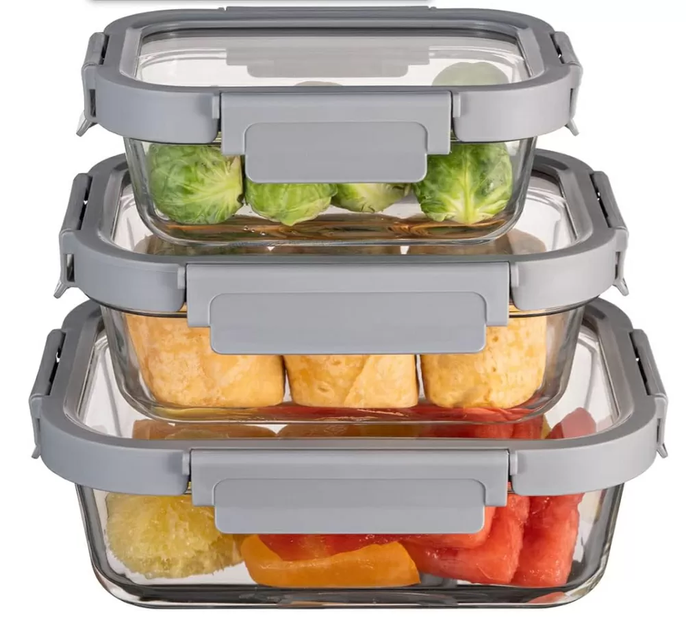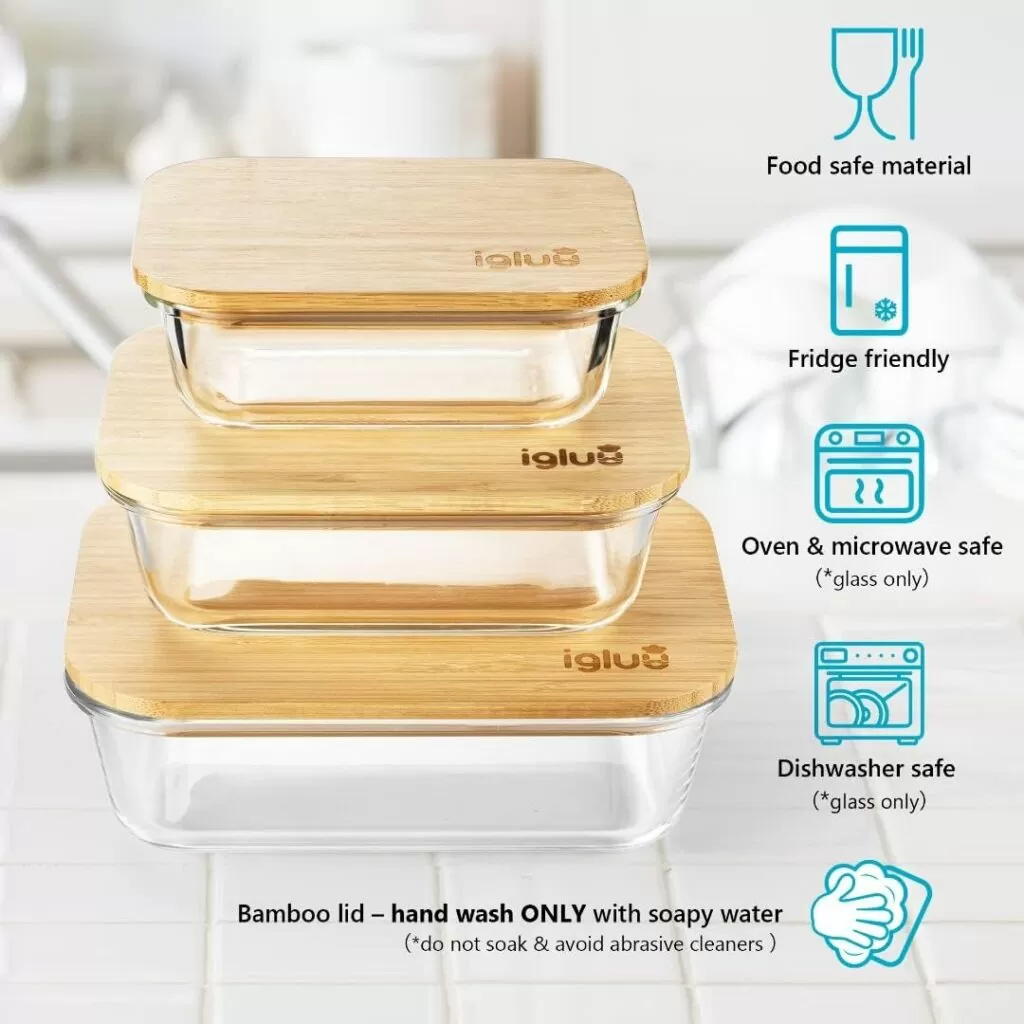 • SPACE SAVING – Glass food containers (370ml, 640ml, 1050ml) can be stacked on top of each other to save storage space.
